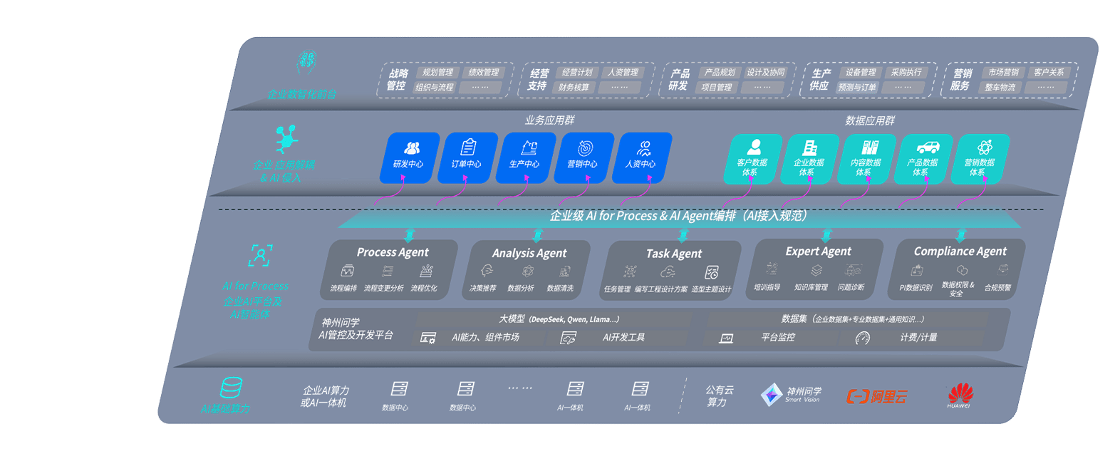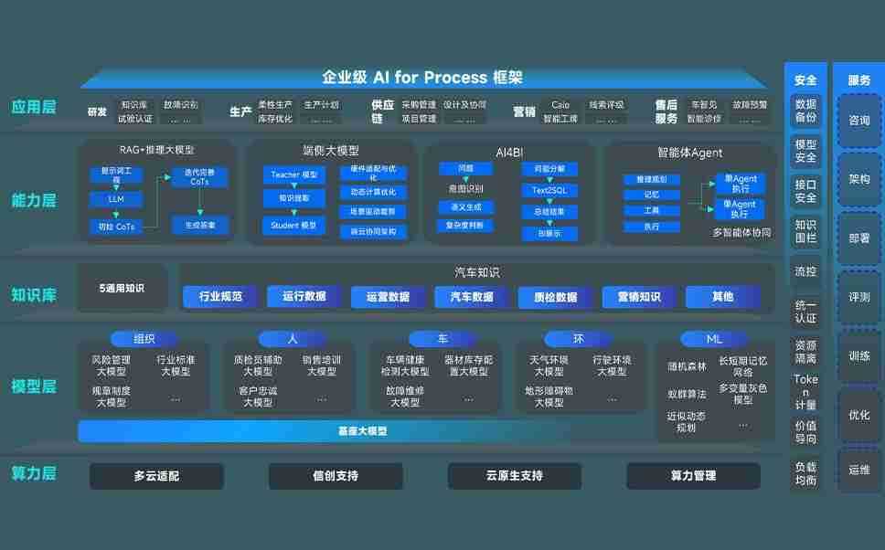 端到端的一站式AI工作空间深度融合了从企业战略规划到日常经营的全流程业务板块,,定向解决车企内部领域多、、、部门多、、、、链条长、、、场景碎片化等难题,,,,支持车企快速构建以AI为核心的生产力写作体系,,,,实现任务执行与AI能力的无缝集成与交互
